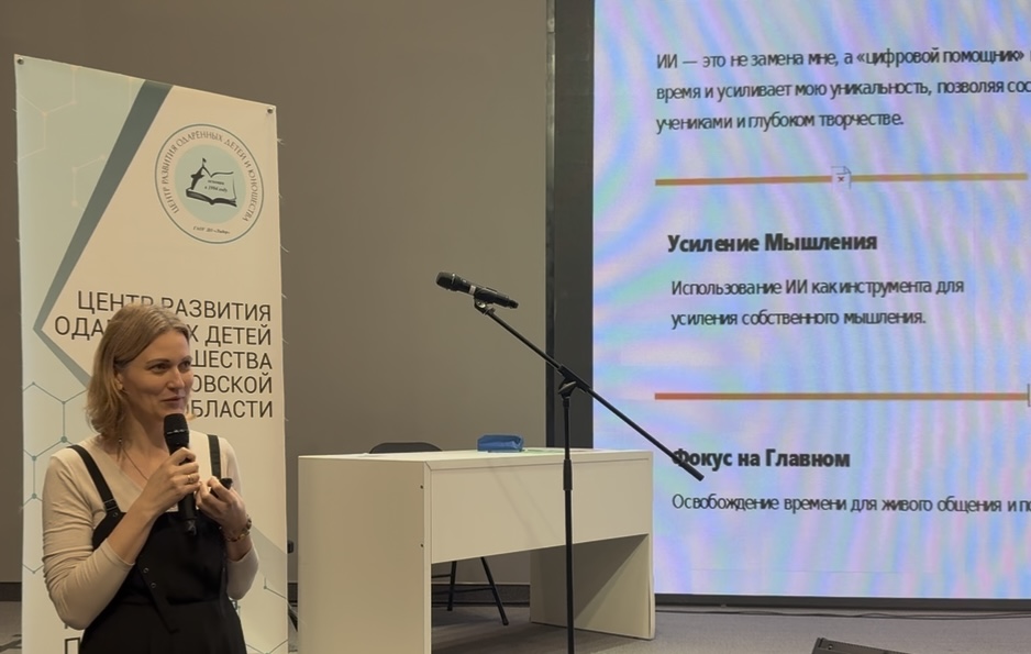 | Цветков Александр Витальевич, заместитель директорапообразовательной деятельности АНОДПО"Центробразования и воспитания детей и молодежи", детскийтехнопарк "Кванториум Псков", кандидатфизико-математических наук | Кванториум Псков и Искусственный Интеллект: как мыучим детей не просто использовать ИИ, а управлять им, проверять и нести ответственность | |